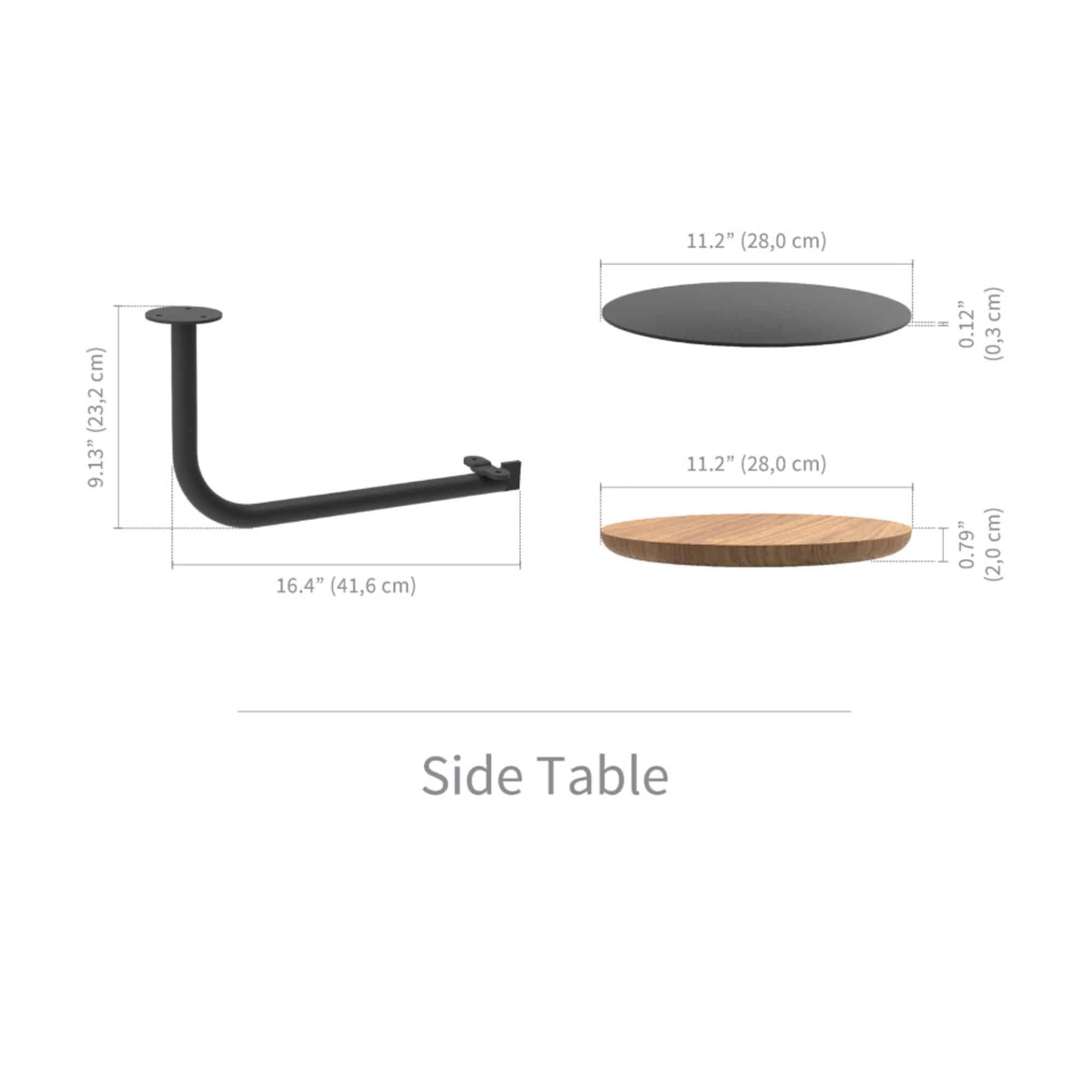 - Tabletop available in natural teak or powder coated charcoal, tabletop arms available in powder coated charcoal or marine grade stainless steel