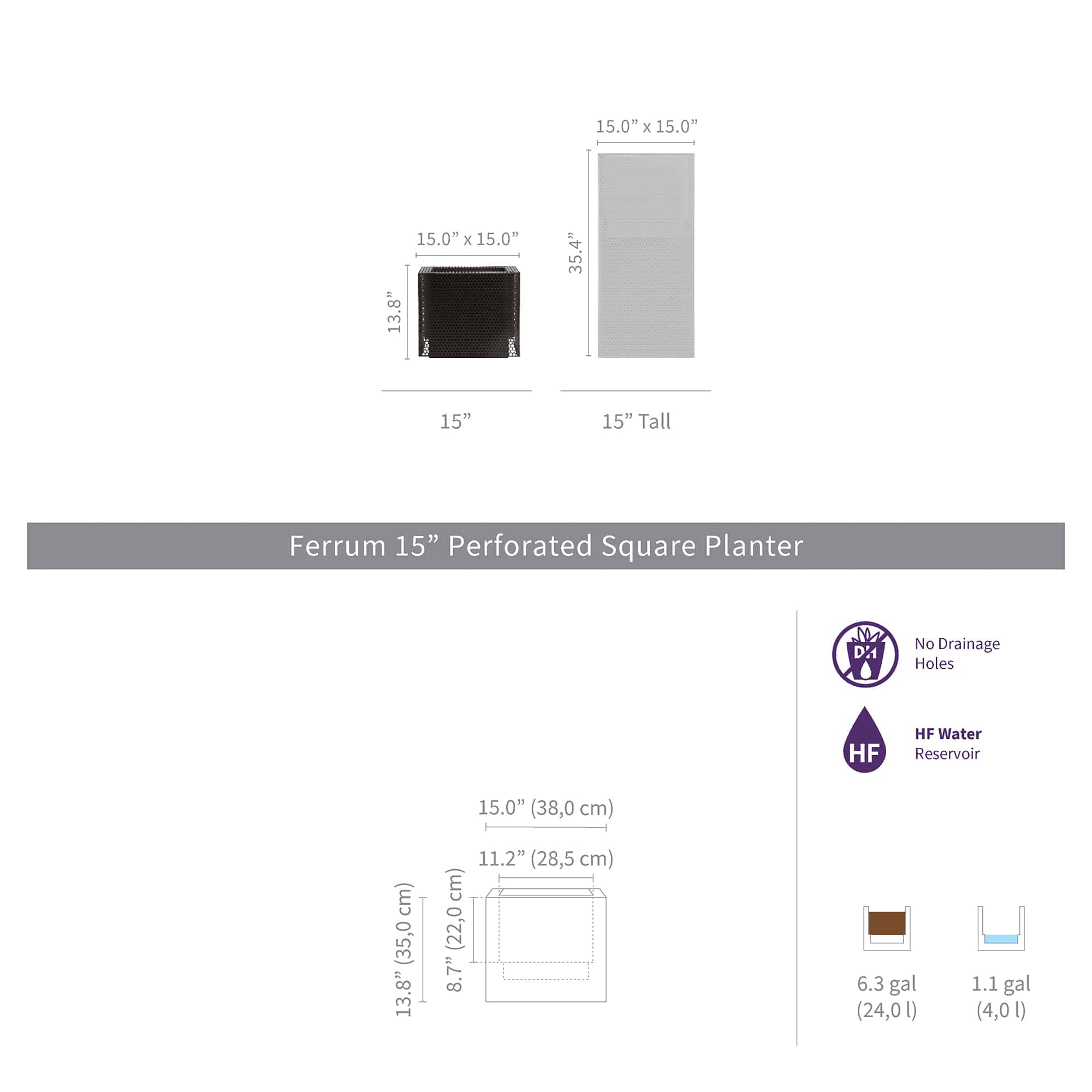 • For outdoor use these planters require user to drill an overflow drain.