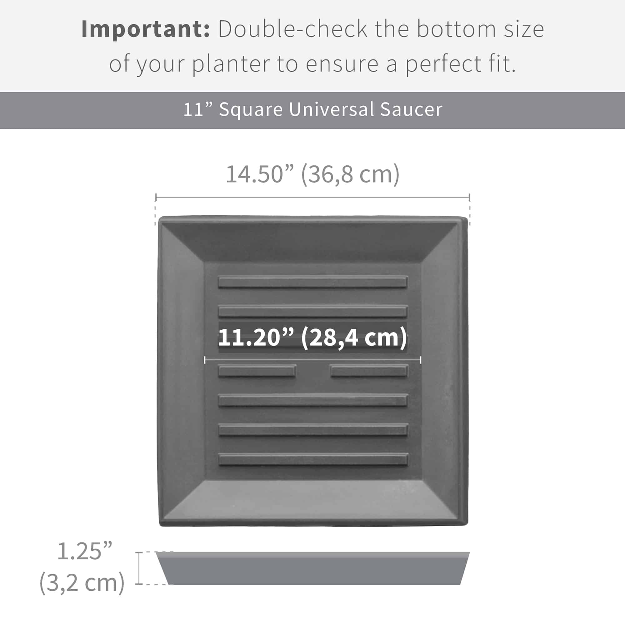 Coordinate your square-base planter with the right color and sized planter tray. Especially when using indoors, you will want to protect surfaces with the Universal square plant saucer. These heavy-duty saucers are designed to withstand the heavier pots and are UV stabilized to ensure a fade-free and long-lasting use. Use them with any existing containers at home.
